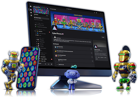 We also developed multiple discord bots to ensure the best service provided for our community. This Web3 Discord server package will be available for free for those projects who mint substantial amount of CyberThrone NFTs.
